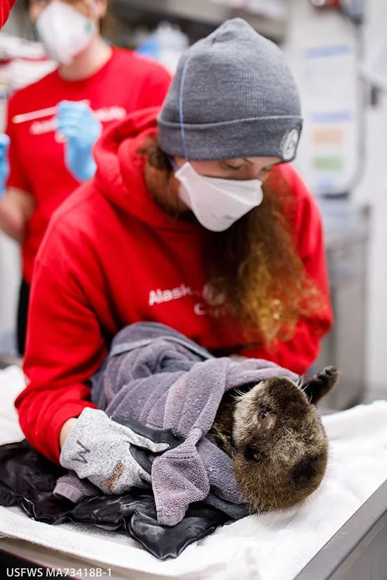 When a new patient arrives at the Alaska SeaLife Center, it takes a skilled team to make sure that the first exam is safe and thorough. In EL2526’s admit exam, our veterinary fellow, Dr. Josie, is the one performing the medical assessment, while Wildlife Rescue and Animal Care Specialist Savannah is handling the pup.